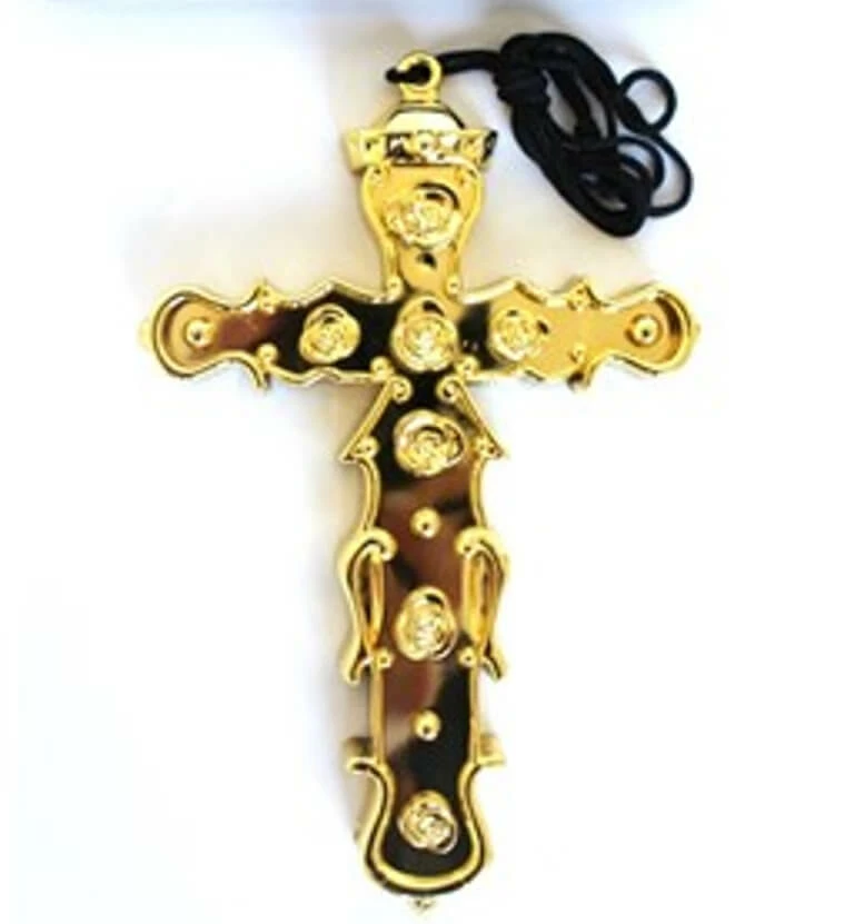 This Metallic Cross is the perfect accessory to add to your religious dress up outfit!! Whether you’re a Nun, Priest a Monk or even an 80’s Madonna look!! This Latin Cross Necklace will complement a variety of costumes and comes in both Gold and Silver!!Â