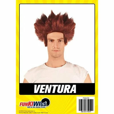 Brown Ventura wig is a crazy spiky style, team with a Hawaiian shirt and you are the Pet Detective from the 1990’s.