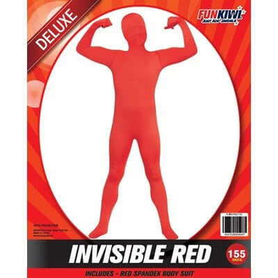 Invisible Teen Body Suit in asst. colours. Also know as a Morph suit has in built mask, gloves and feet. The Invisible suits are great for Sports Carnivals or creating your own super hero costume. Available in green, red and blue.