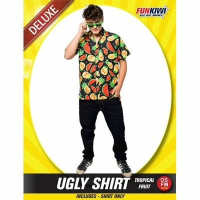 Mens Tropical Shirt with bright watermelon and pineapple pattern.