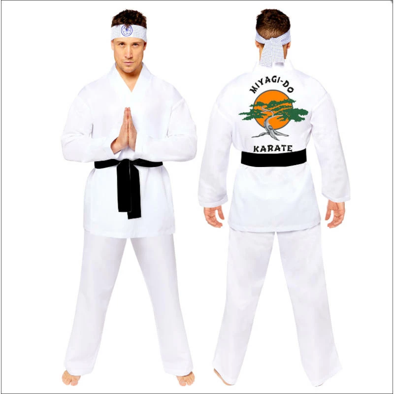 Miyagi De Karate Men’s costume from popular 1980’s movie The Karate Kid and Cobra Kai series.Â