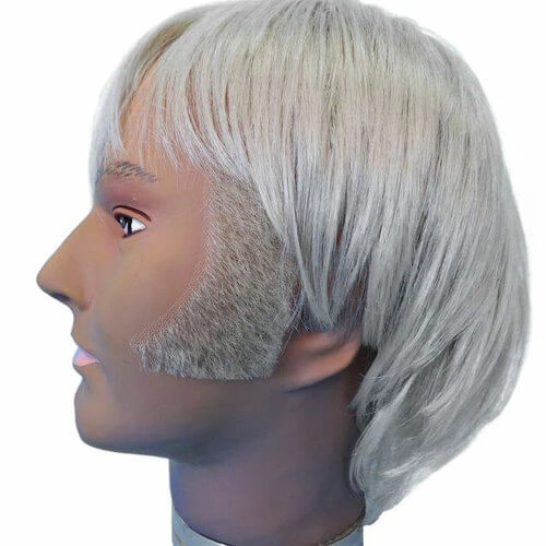 Curved Sideburns Human Hair in Grey, Blonde and Brown