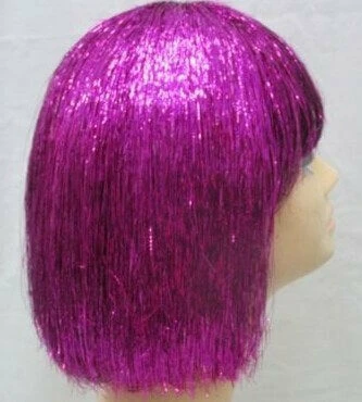 This hot pink tinsel Disco bob wig is perfect for Festival, Futuristic & Space themes.