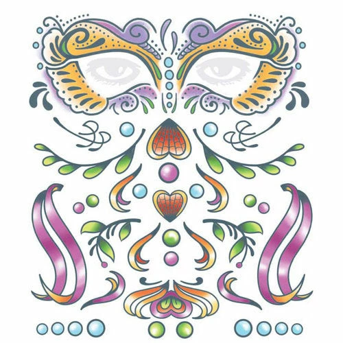Carnivale (Carnival) Face Tattoo is a beautifully designed tattoo that can add a few tricks and flip any costume in to something fun and playful. This temporary tattoo is not only great for the face, but try using anywhere on the body to mesmerize your audience!