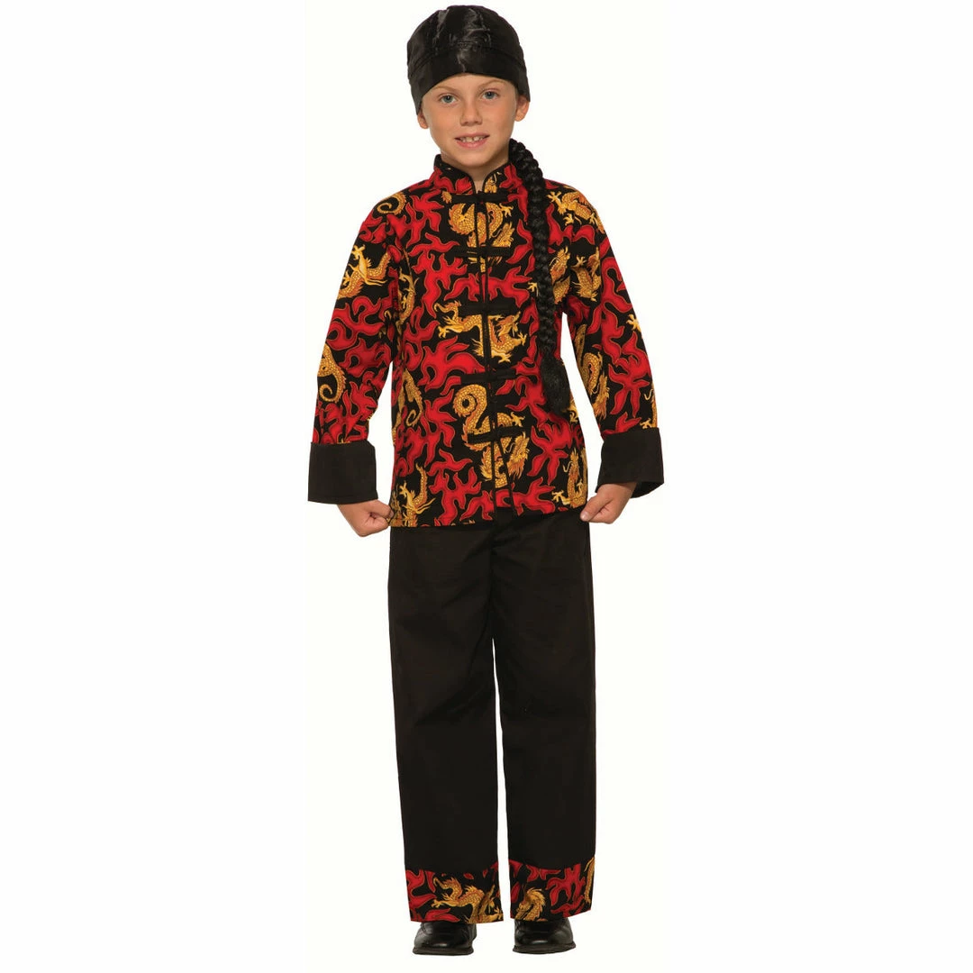 Child’s Dragon Prince includes long sleeve shirt with printed dragon pattern and black pants with pattern trim.