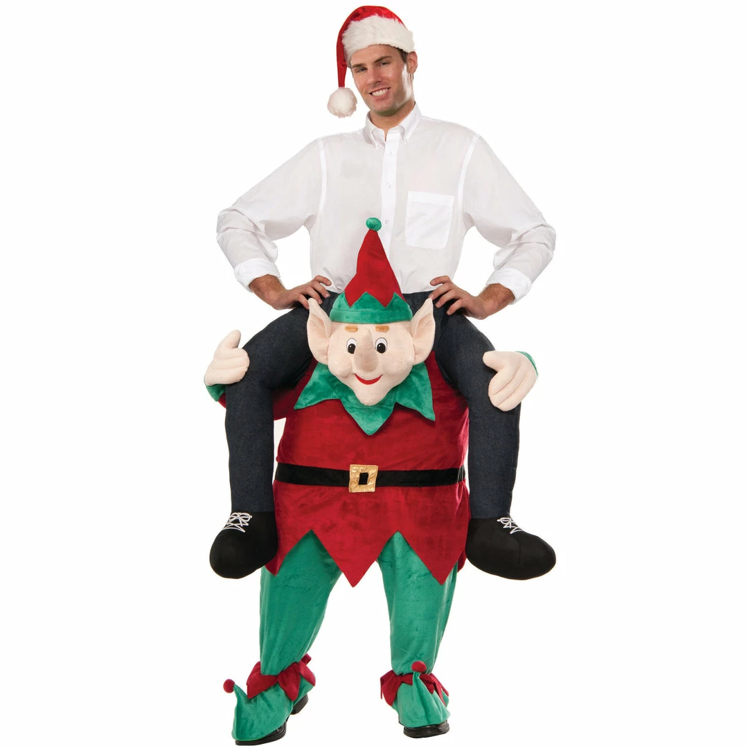 Myself On An Elf costume is standard size, is a pull on costume with fake legs attached.