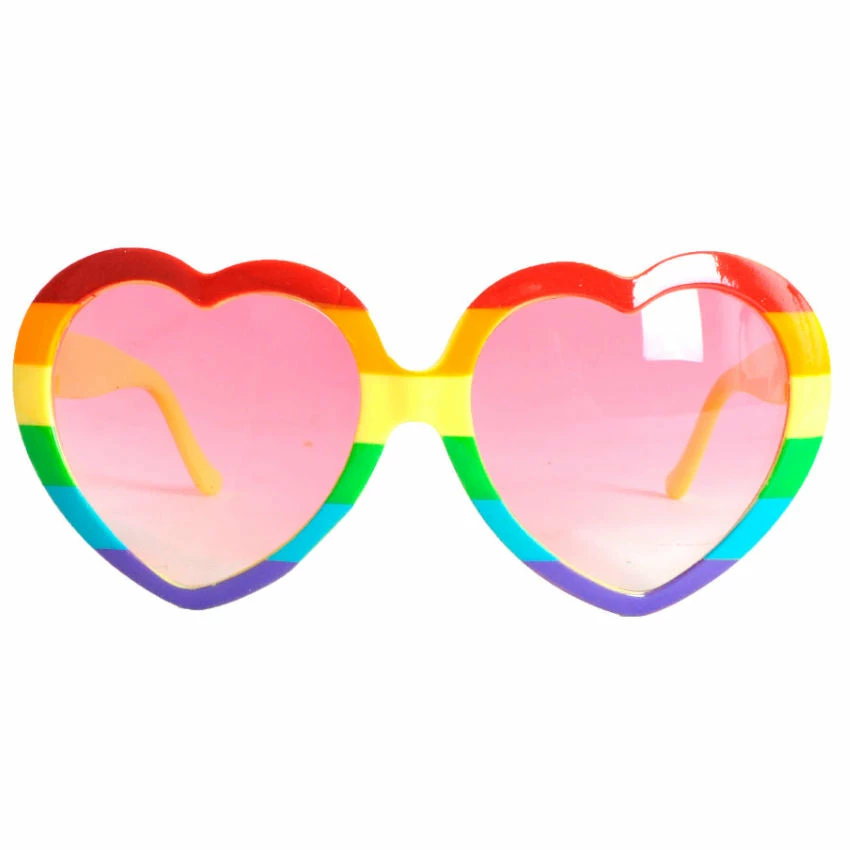 - Rainbow heart shape glasses with pink lenses.