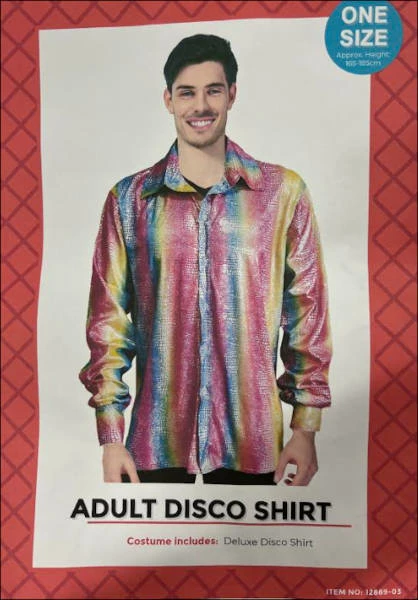 Pair with white flares, gold chain, chest hair and and Afro to complete your Disco outfit.