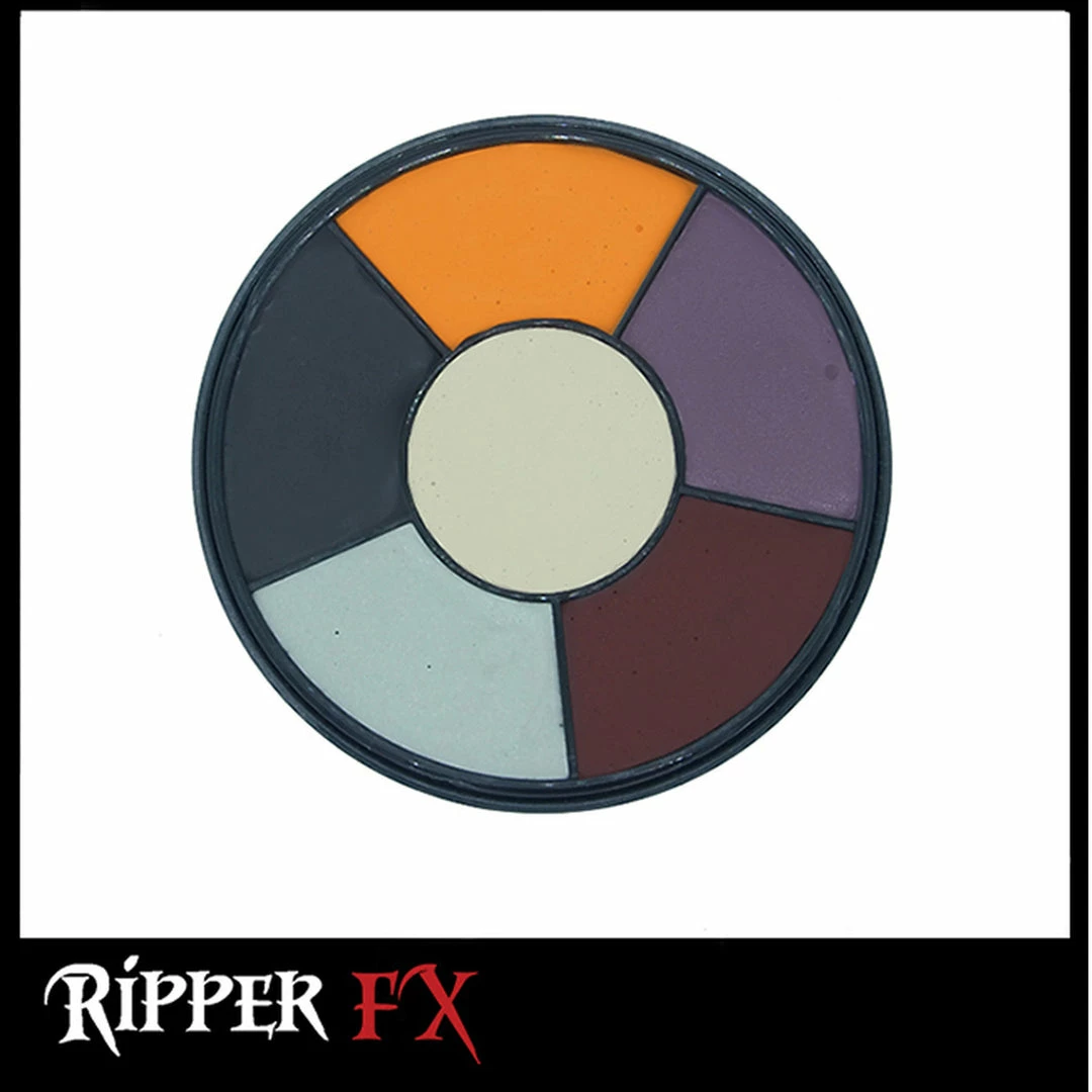 These Ripper FX Professional Cream Wheels are your one stop Palette for character creation. Each wheel comes with 6 colors distinct to each character. Use these creamy, color-rich pigments to blend on top of skin or latex to create lifelike effects!!