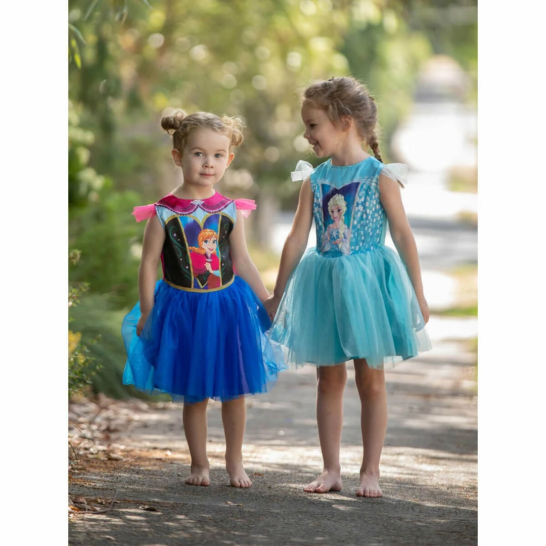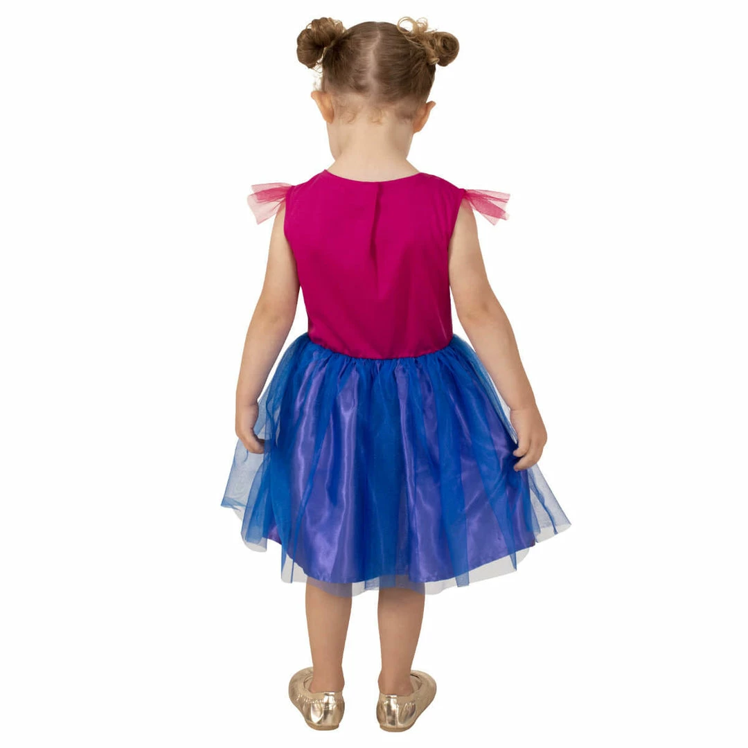This adorable costume features a dress with satin skirt and tulle glittery overlay, bodice is satin with digitally printed character motif and velcro tabs at rear, sleeves are embellished with tulle ruffles. This Costume is perfect to wear when you become Anna!!