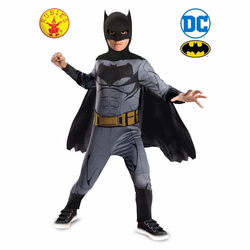 Batman Classic Childs Costume transforms you into the famous DC character. By day he is the eccentric Gotham City tycoon Bruce Wayne, but by night Batman is the fearless Gotham City Crime fighter. This classic superhero uses his batarangs, bat cycle and bat mobile to out-smart the likes of The Riddler, The Penguin and The Joker. Played by Actor Ben Affleck he is the star of Warner Bros blockbuster films Batman Vs Superman: Dawn of Justice (2016), Suicide Squad (2016) and Justice League (2017). As much-loved today as ever – become The Batman today!