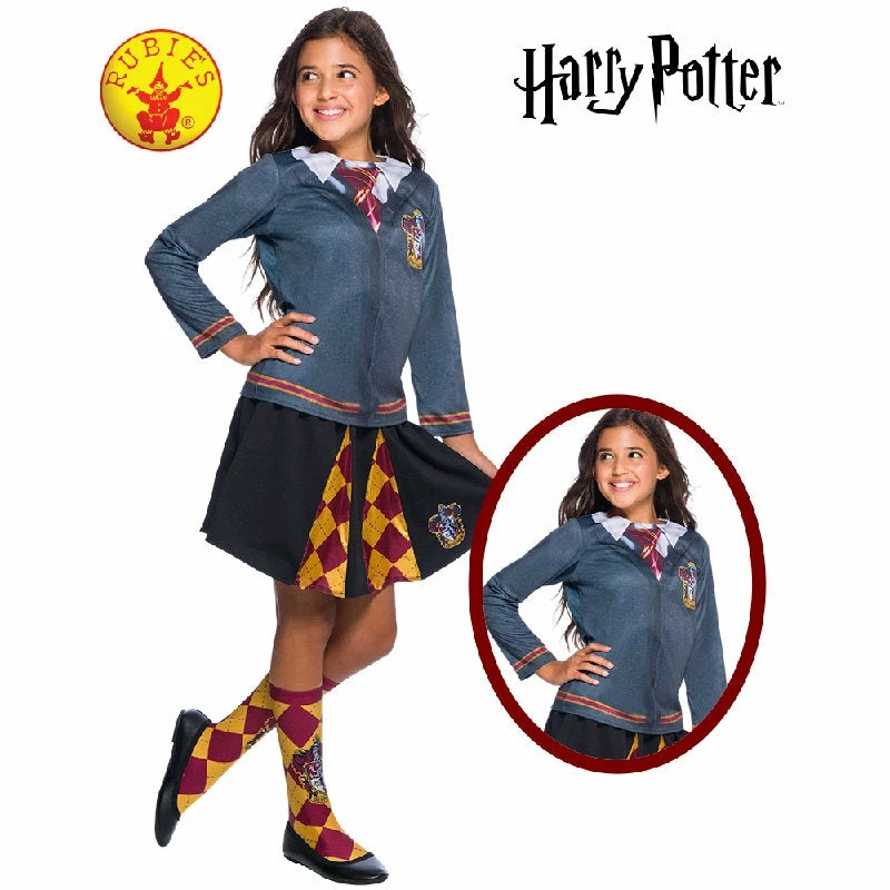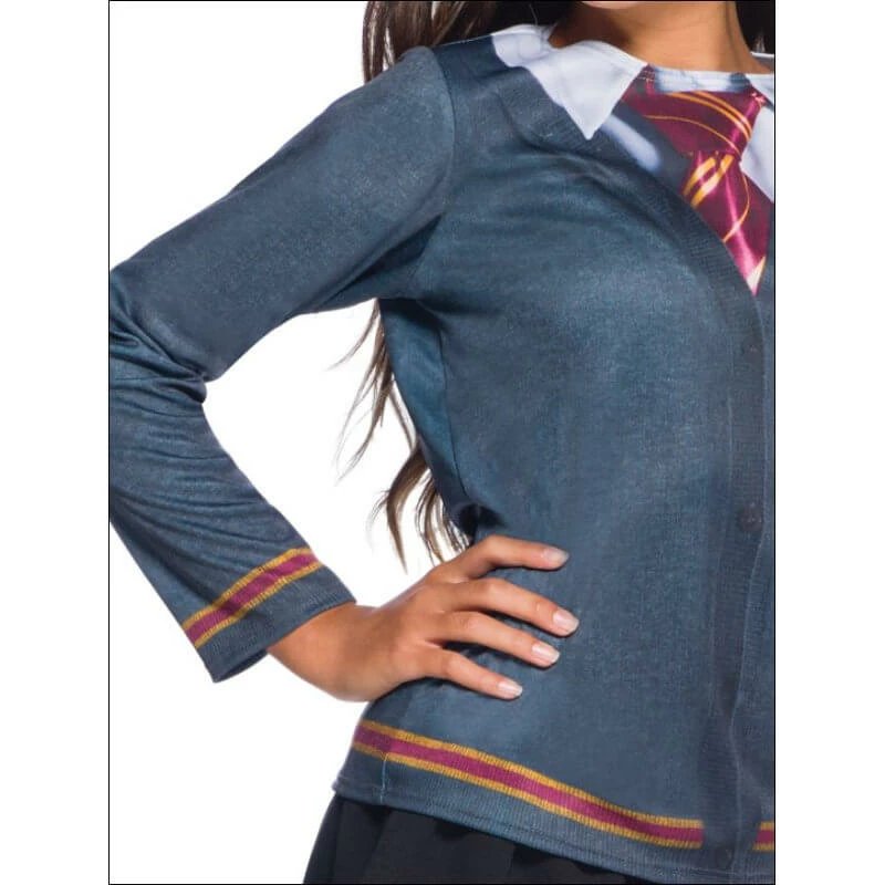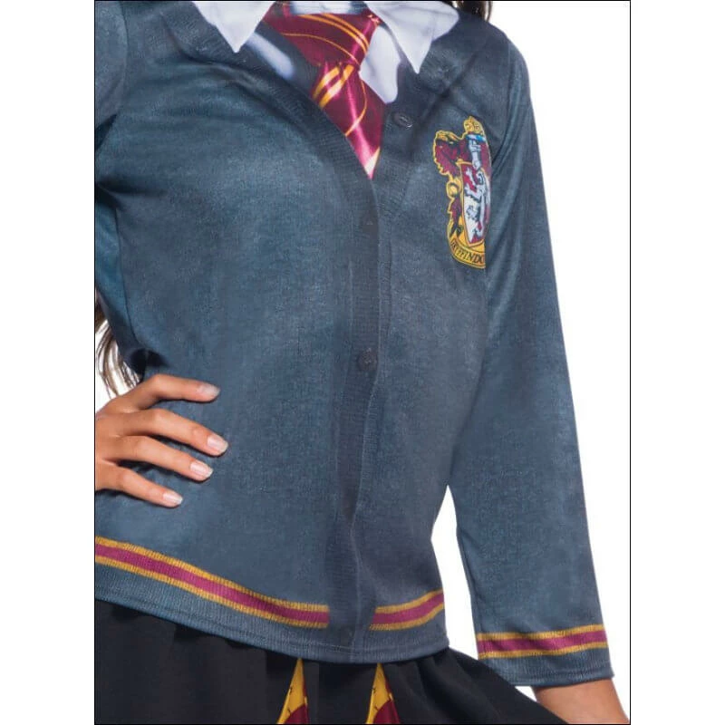 - Printed detail includes cardigan with cuff details and buttons, shirt, tie and house emblem.