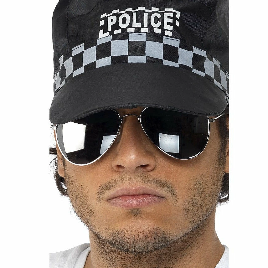 These silver mirrored specs/glasses are great for finishing off police and 80’s themed costumes!