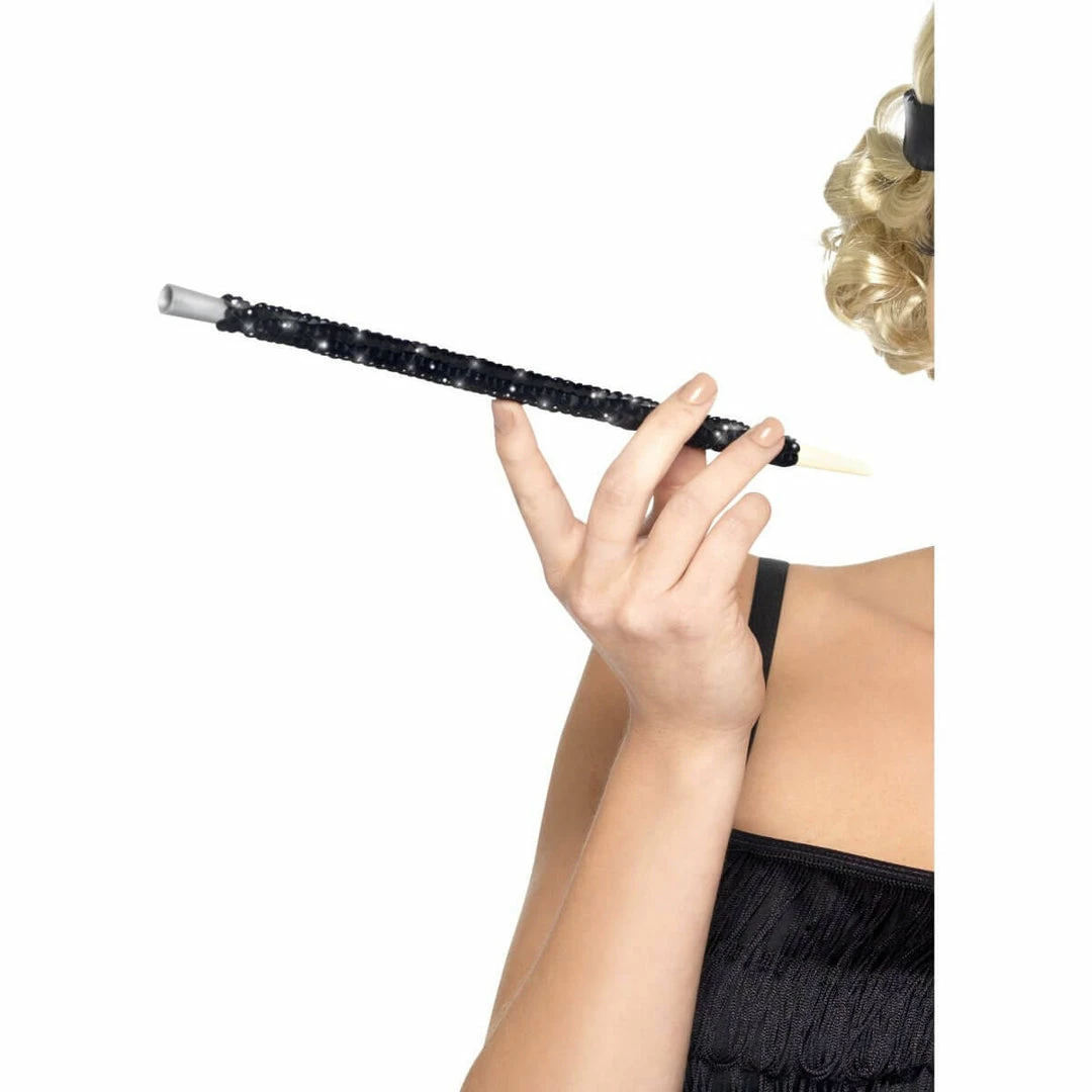Black Sequinned Novelty Cigarette Holder is perfect for your next 1920’s themed event. The sequins feature on the stem of the novelty cigarette holder, with a white mouth piece and silver end.Â
