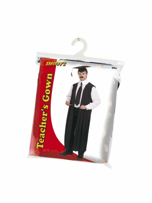 Check out our adult Teachers fancy dress sleeveless graduation gown in black with gathered shoulders for a pleated effect.
