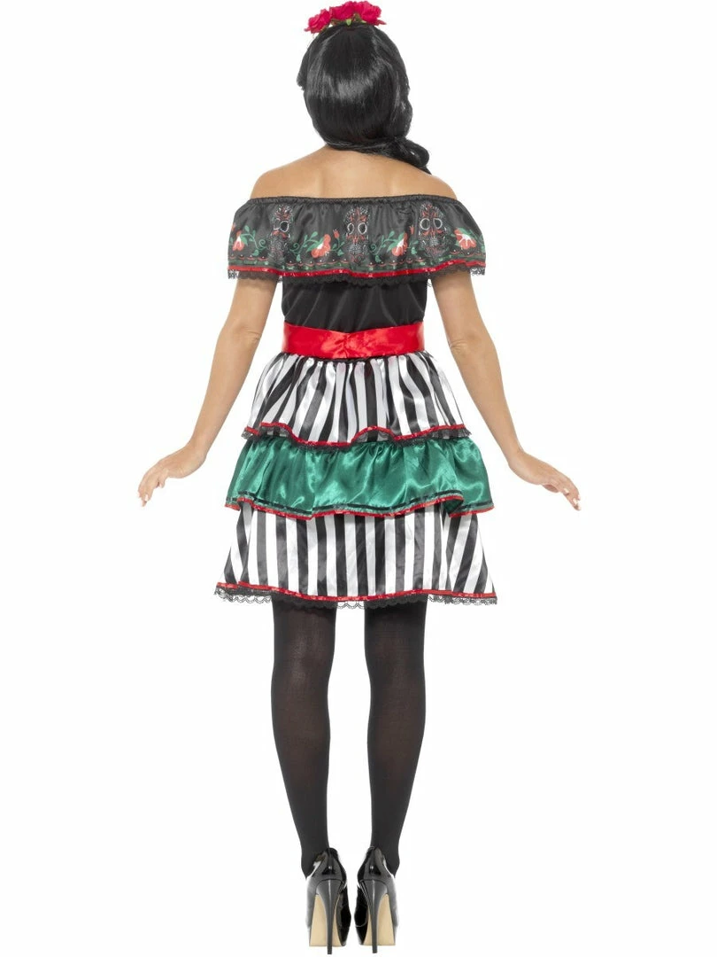 Day of the Dead Senorita Doll costume is a flattering off the shoulder style and layered skirt. Check out our range of Day of the Dead tattoos and Body Jewels to complete the look. This costume is ideal for theme parties like Cinco de Mayo, Mexican and Around the World parties.