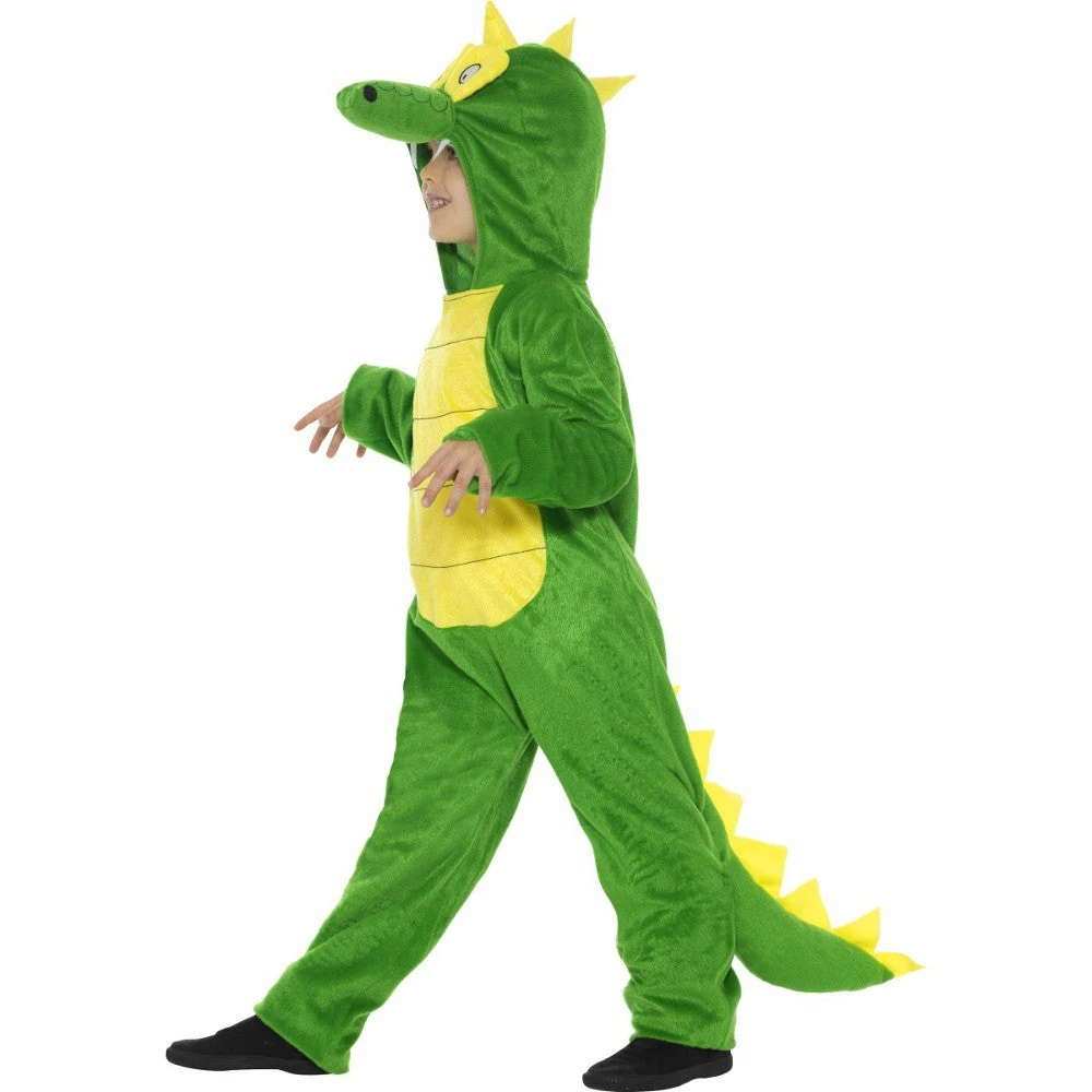 Deluxe Child’s Crocodile costume in green and yellow with attached hood and attached plush tail. You can also use this costume for a Dinosaur.