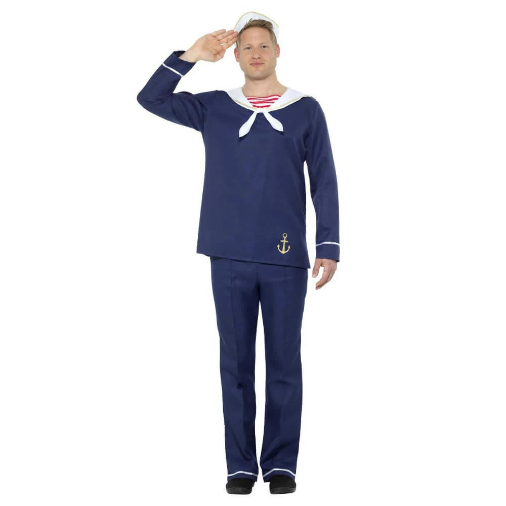 This high quality men’s Sailor Man fancy dress costume by Smiffys is the perfect thing to have you scrubbin’ the decks!! This costume is perfect for any Nautical, Navy or Occupation themes!! Look ship-shape in this fantastic sailor uniform!!Â