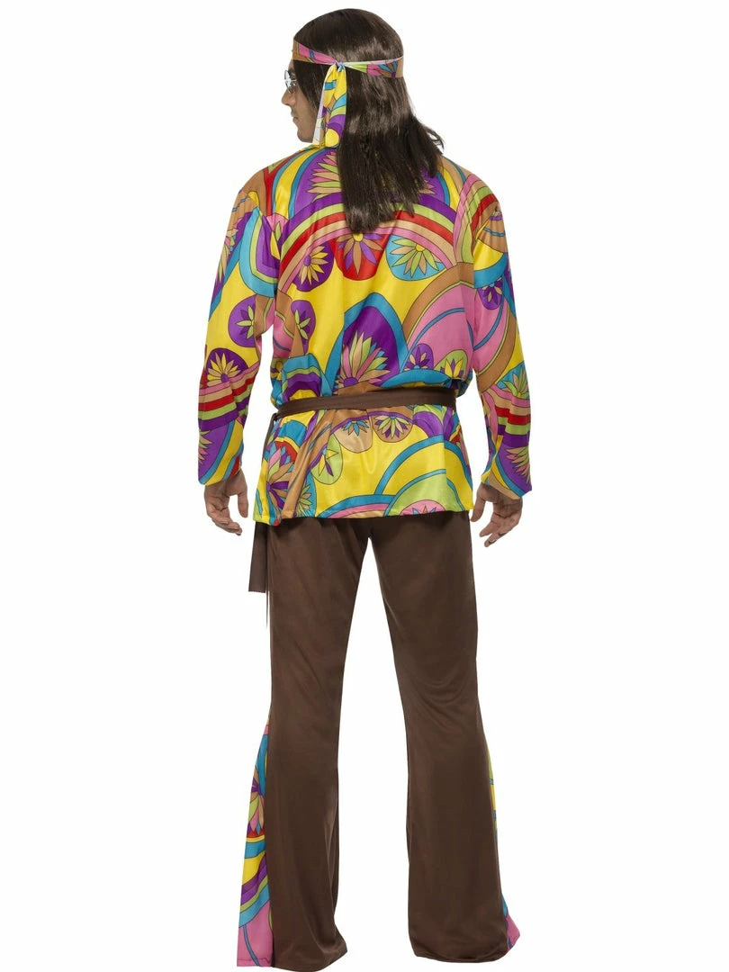 Yeah, baby, yeah, check out this groovy 60’s/70’s adult psychedelic hippie man fancy dress costume which comes complete with a stunning multi-colored long sleeved psychedelic print shirt, brown lose fitted trousers which has the same psychedelic print in the flare of the trousers, a coordinating brown tie for the waist and a psychedelic print self tie headband. Great for all the hippy fancy dress lovers.