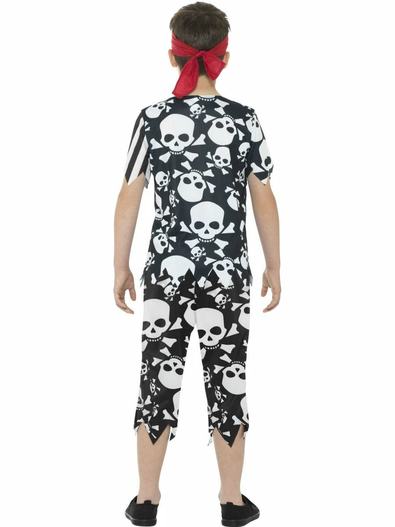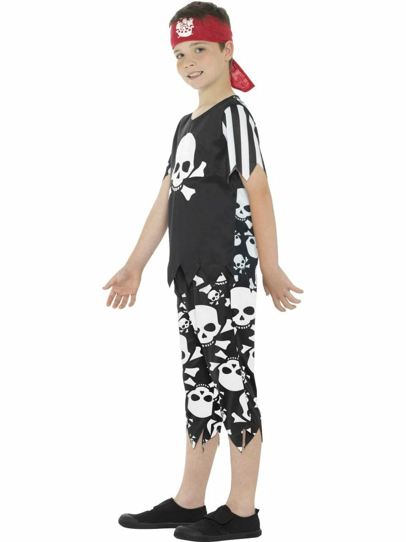 Rotten Pirate Boy Costume, Black & White, with Top, Trousers & Headpiece.