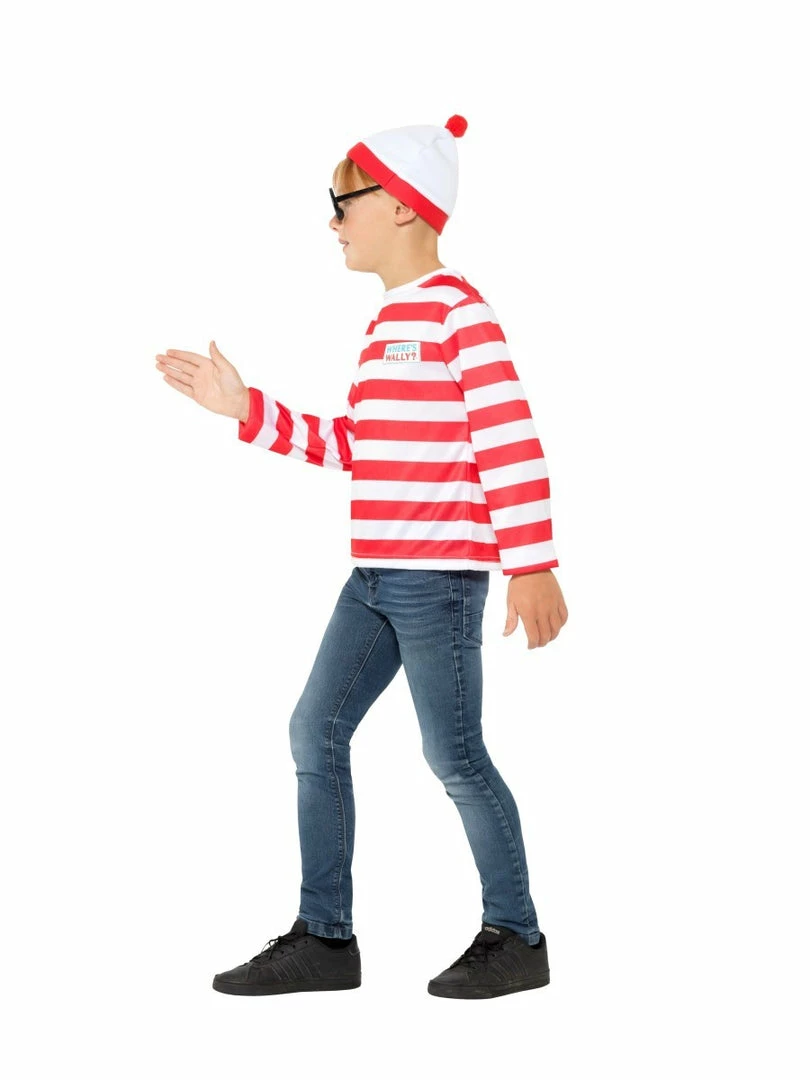Where’s Wally Kids Instant Kit includes stripe red and white shirt with logo, hat and glasses. Complement with blue jeans or tights to get the look, suitable for girls and boys.