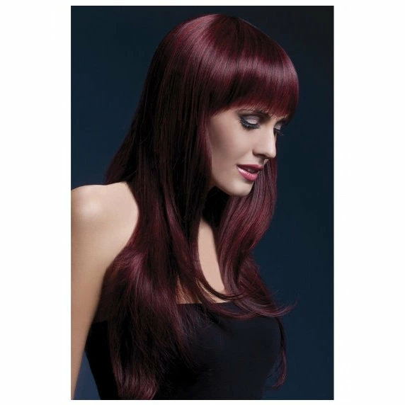 Long Straight Wig with Fringe in Black Cherry – Sienna