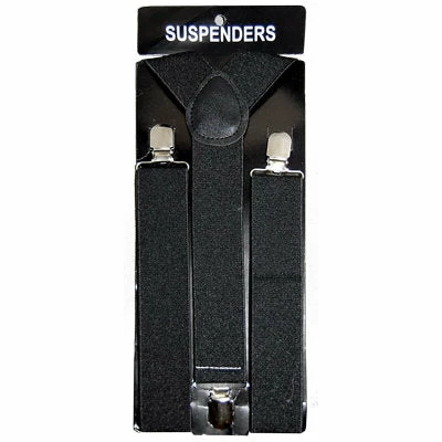 These stretchy black braces/suspenders are a great accessory for Gangster, 1920’s, Circus and many other costumes. They are adjustable and one size fits most.