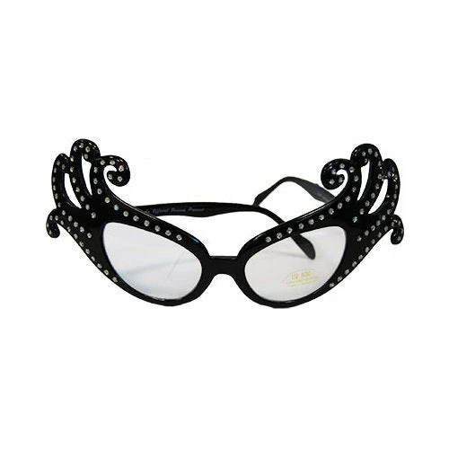 Black Dame Edna Rhinestone Glasses with clear lens, are great for Aussie Parties.