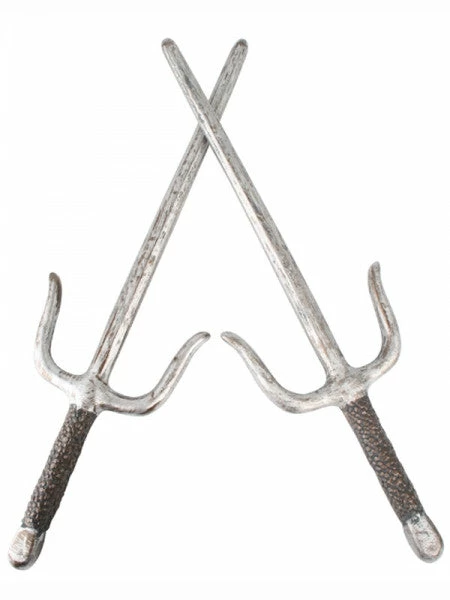 Plastic real-look sai at 42cm. 2 in a set. Perfect for Ninja Turtles, Elektra or ninja warrior costume.