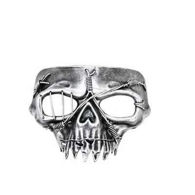 Guys, our Casper silver Halloween face mask is petty scary, featuring barbed wire and evil teeth.