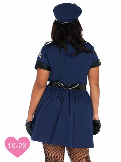 Bad boys, bad boys, what they gonna do when you come for them wearing the smokin’ hot Flirty Cop costume by Leg Avenue. Get your cuffs ready, this sexy police costume features a zipper front dress with badge details, neck tie, belt, hat, and toy handcuffs for police time fun. Perfect for bedroom role play after Halloween!