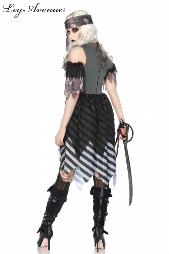 Ghost Pirate Lady costume by Leg Avenue includes dress, head wrap and sleeves.