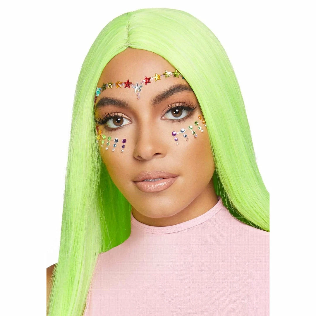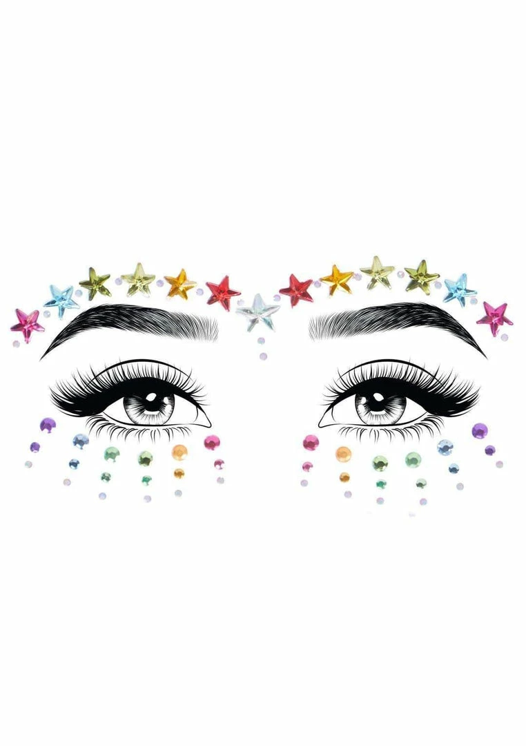 - One set of reusable Face Jewels, simply peel and stick. Can be reapplied with Eyelash Glue or Spirit gum.