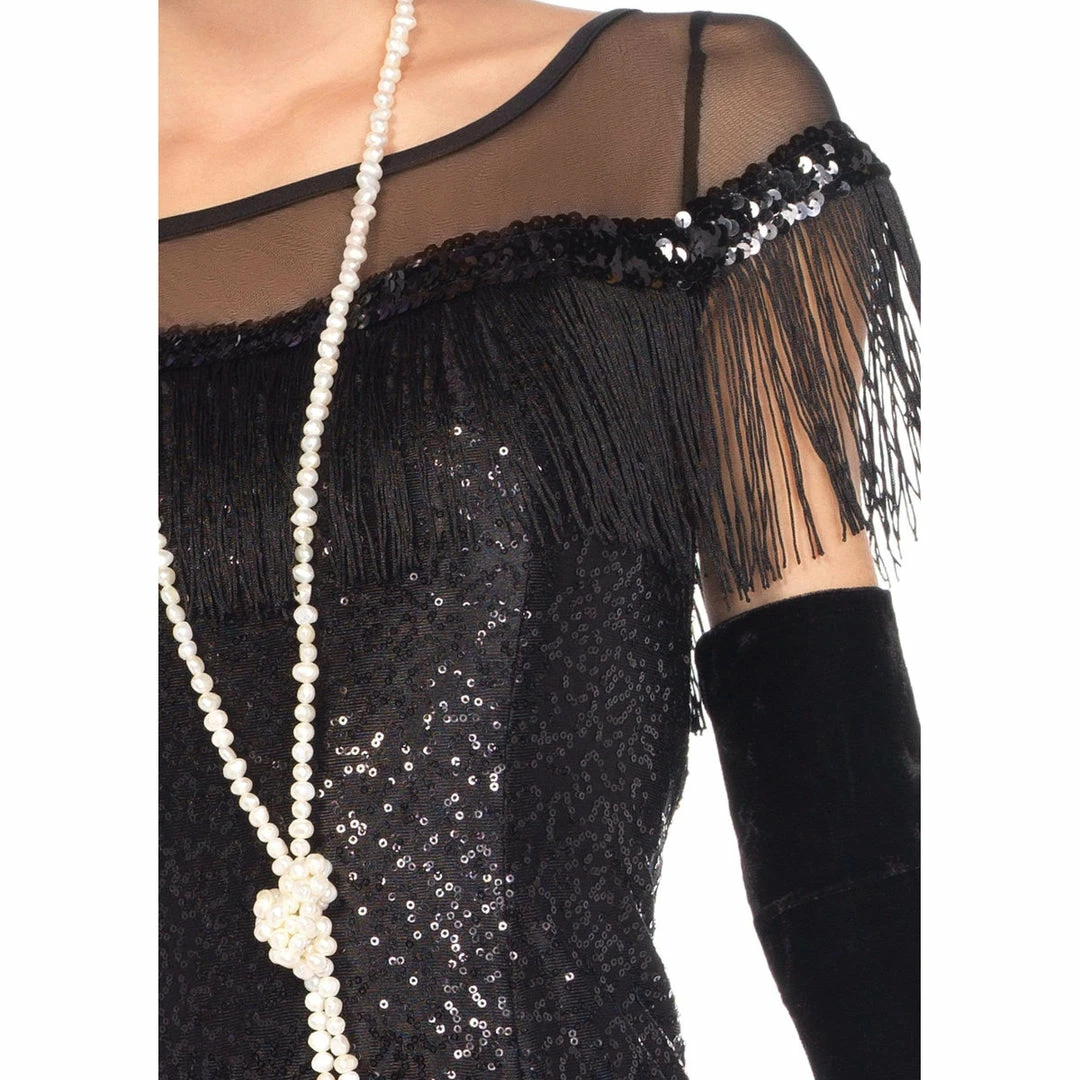 Complete the Look: To complete this glamorous 1920’s costume look, level up with the Leg Avenue Extra Long Gloves, Fence Net Fishnet Pantyhose and Flapper Wig.