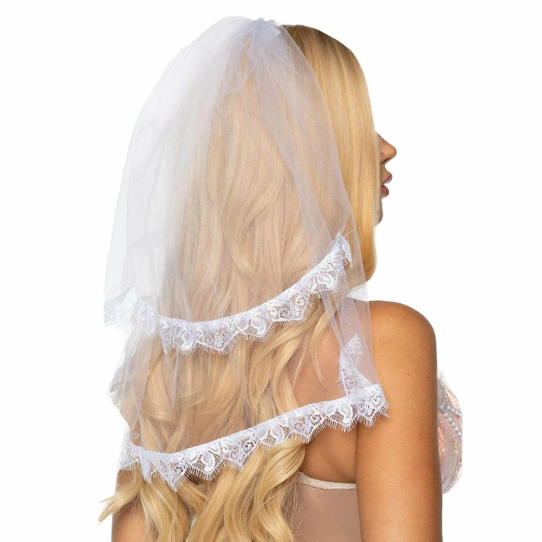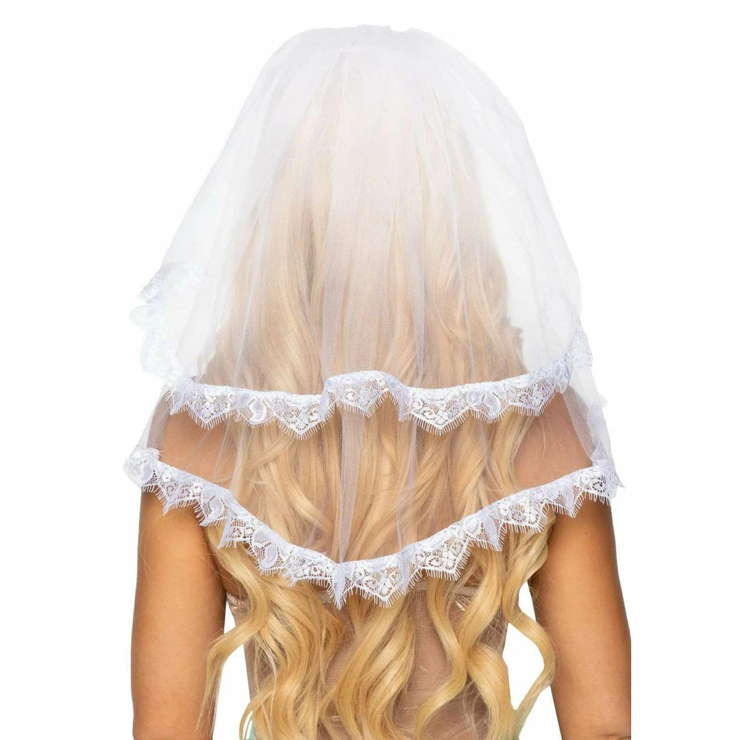 From runaway bride to murderous doll bride, the Leg Avenue Lace Trimmed Bridal Veil is a versatile accessory for recreating iconic characters. This blushing bridal accessory features double layered tulle veils with fringe lace trim and hair clip. To keep you looking on-point all night long without any fuss, the veil is complete with an secure easy-to-wear hair clip.