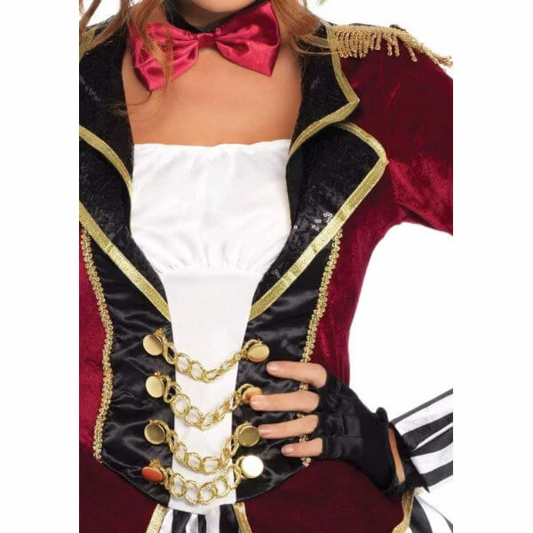 Command your audience in the show-stopping 3 PC Night Ringmaster women’s costume by Leg Avenue. This ringmaster costume for women is perfect for a Halloween costume, parties, or big top fun! Pair your circus look with Leg Avenue gloves and fishnet tights to get the look.