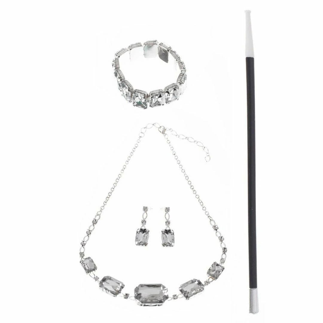 Make a statement with this 50’s Hollywood Glamour Set with elasticized bracelet, earrings (not clip-ons) and choker necklace with square gems.Â