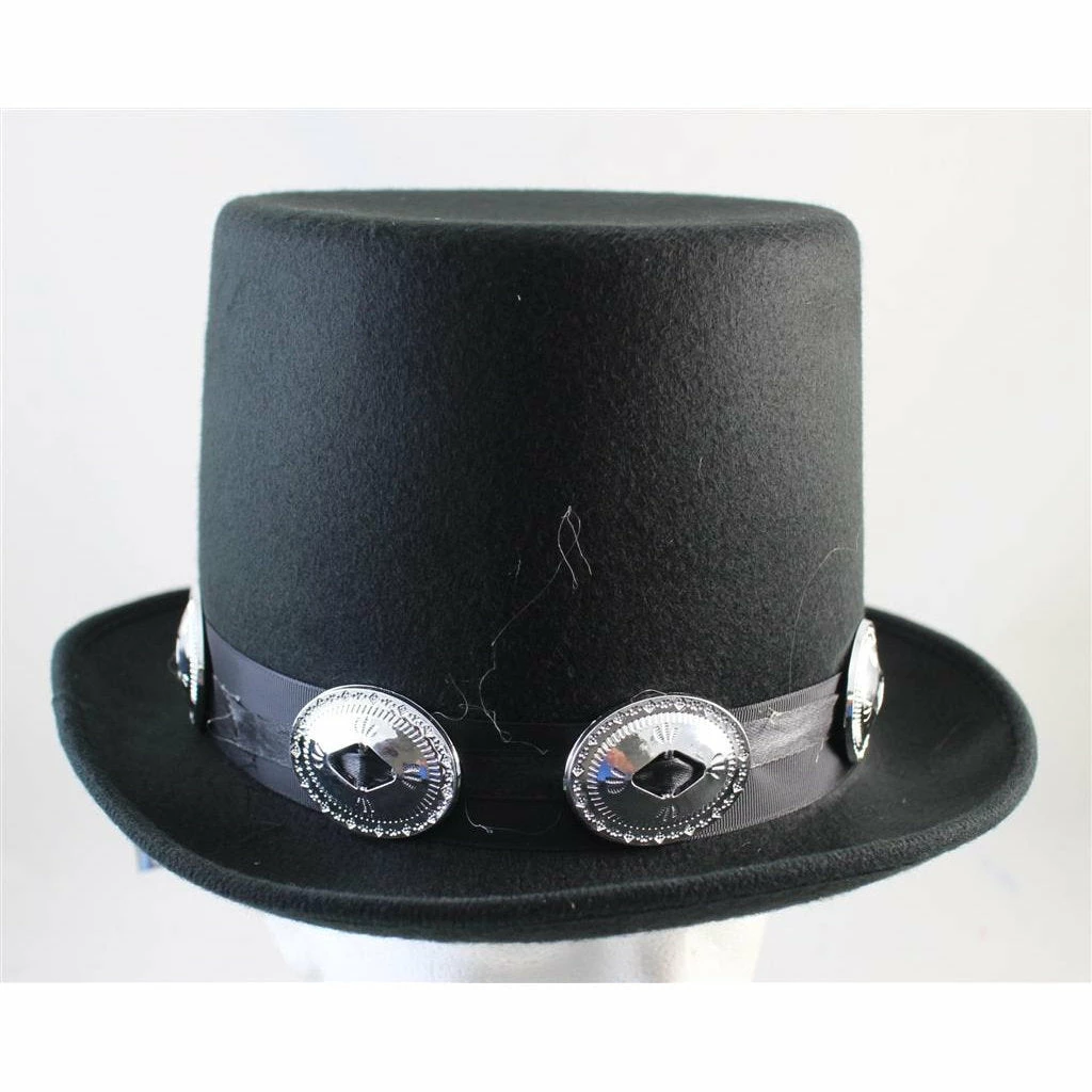 Rock out with this Slash Style Top Hat! Made of black suede, featuring silver plated buckles around the band and elastic on the inside for a good fit. This hat is sure to have you rocking out at your next Rock ‘n’ Roll or 1980s/1990s party!!Â