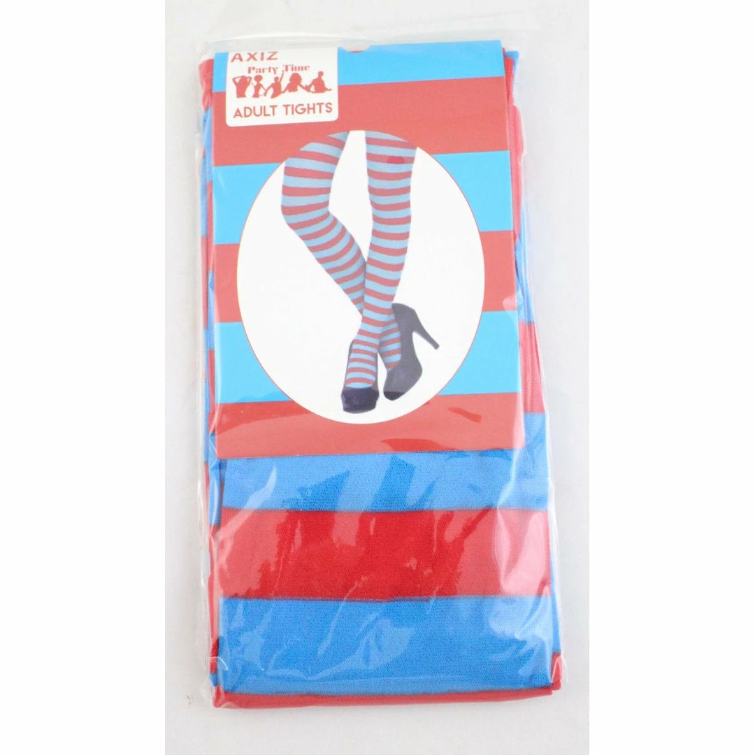 Blue and red striped stockings. These stockings are thigh high not full stockings.