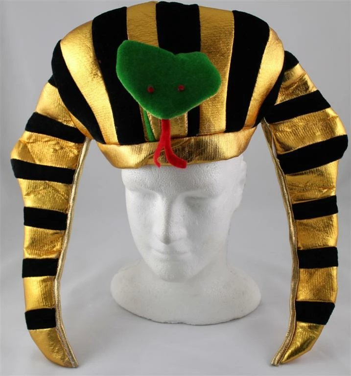 Egyptian Pharaoh hat in black and metallic gold with a snake feature.